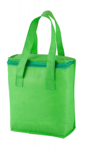 Cipzáras, non-woven hűtőtáska alumínium béléssel. 6 db 0,33 literes üdítős doboz vagy 3 db 0,5 literes palack fér el benne.