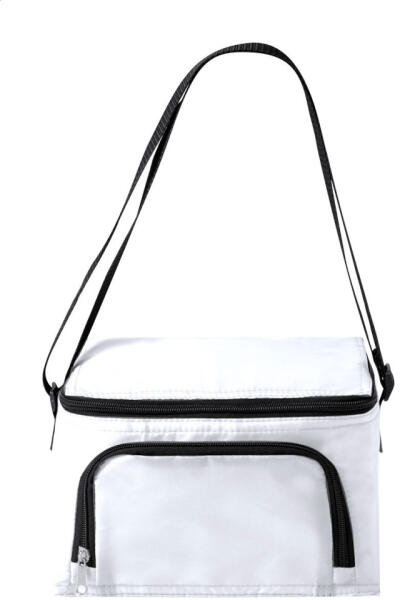Poliészter hűtőtáska cipzáras rekeszekkel, alumínium béléssel és fülekkel. 6 darab 0,33 l-es italdoboz tárolására. 210D poliészter.