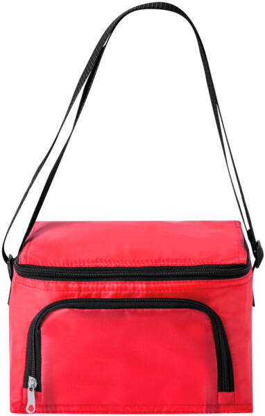 Poliészter hűtőtáska cipzáras rekeszekkel, alumínium béléssel és fülekkel. 6 darab 0,33 l-es italdoboz tárolására. 210D poliészter.