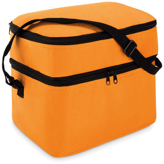 600D poliészter hűtőtáska. 2 rekesszel, alumínium fólia béléssel. Állítható vállpánt.