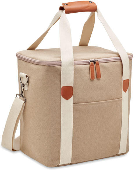 Nagyméretű hűtőtáska 450 g vastag mosott vászonból, pamut füllel. Szigetelés: 15C PEVA, 6 mm-es PE-habbal.
