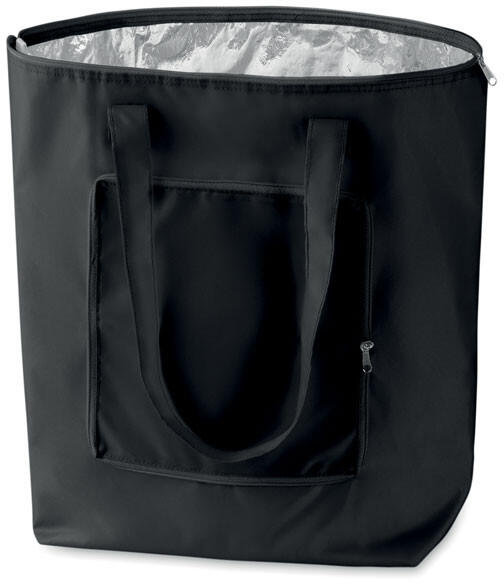 Praktikus, összehajtható hűtőtáska 210D poliészter anyagból. Szigetelő anyag: alumínium fólia. Űrtartalom 13 l.