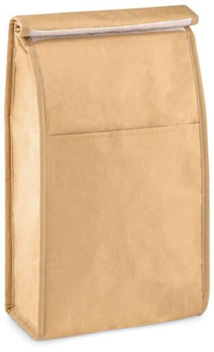 Szövött papír uzsonnás tasak, első zsebbel. Szigetelő anyag: alumínium fóliával laminált hab. Űrtartalom 3 l.